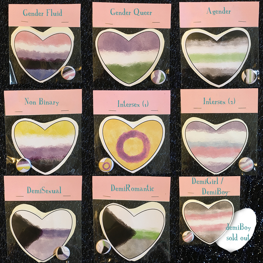 Queer Hearts sticker & pin pack